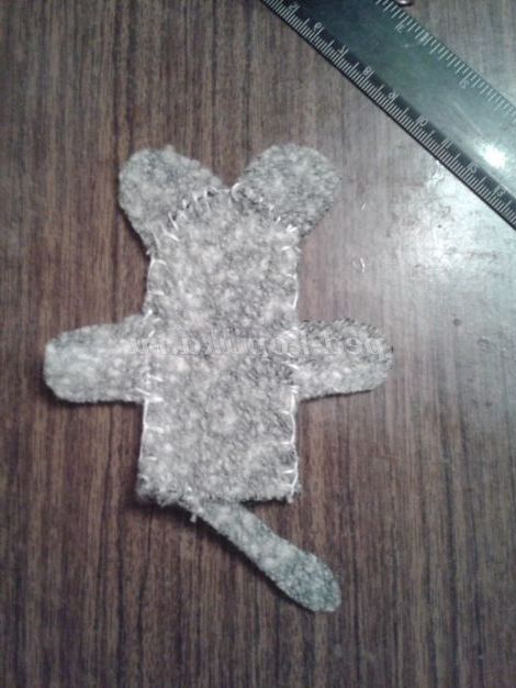 1. Вибираємо тканину для першого казкового героя - Мишки - норушки.Рисуем на тканини основні деталі( тулуб 2 дет., вушка 2 дет., лапки 2 дет., хвостик) і викроюємо.