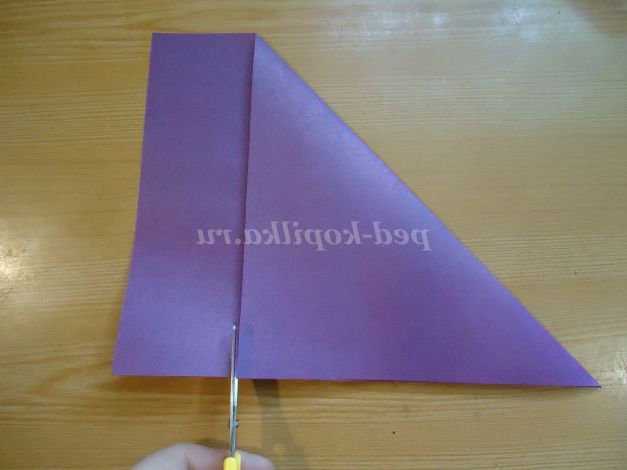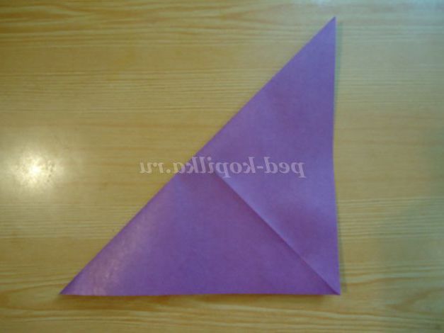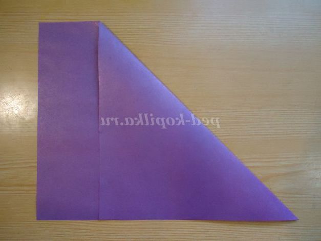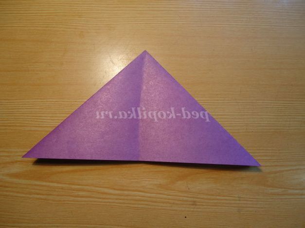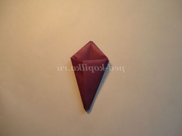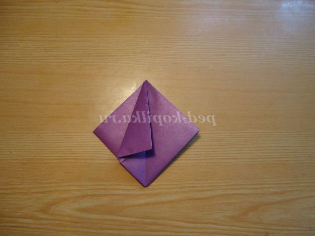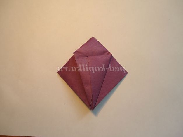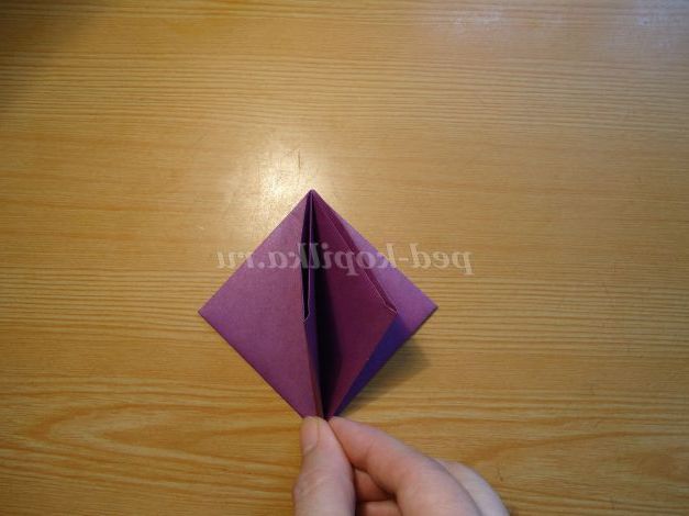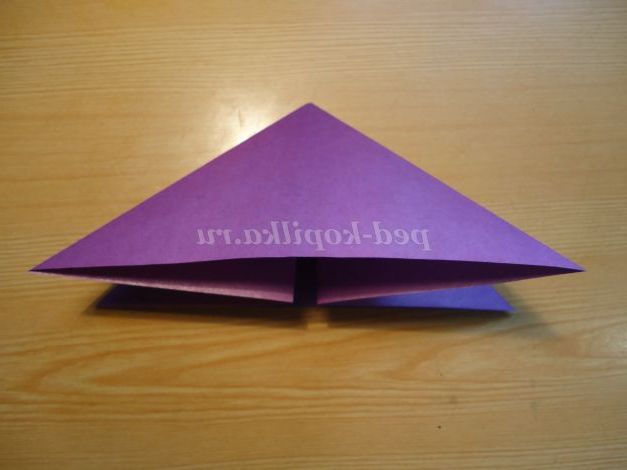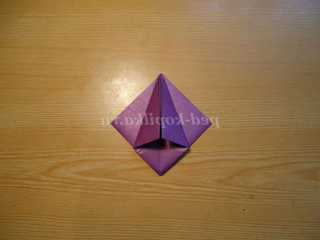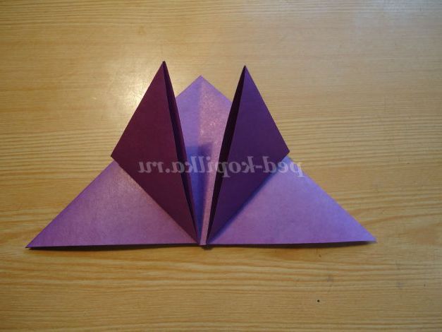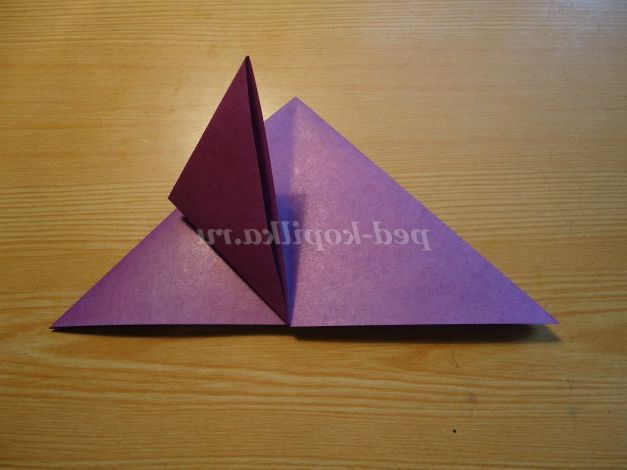 7.Складываем лист так, щоб трикутники пішли всередину з обох сторін.