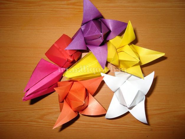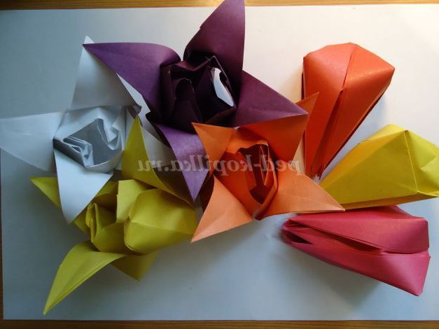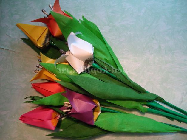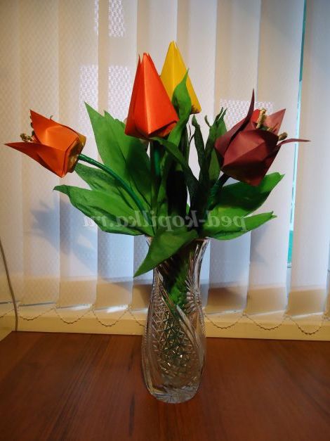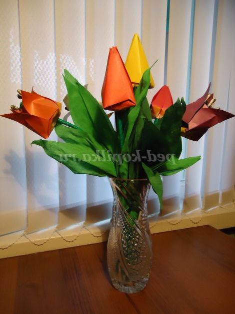 Тюльпани з кольорового паперу в техніці орігамі своїми руками
