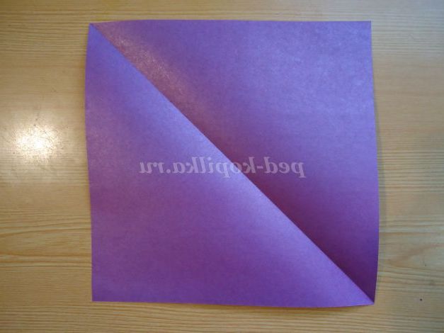 2.Нам необхідно зробити квадратний аркуш, тому згинаємо лист так, щоб місце згину стало діагоналлю квадрата.