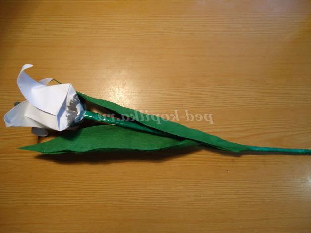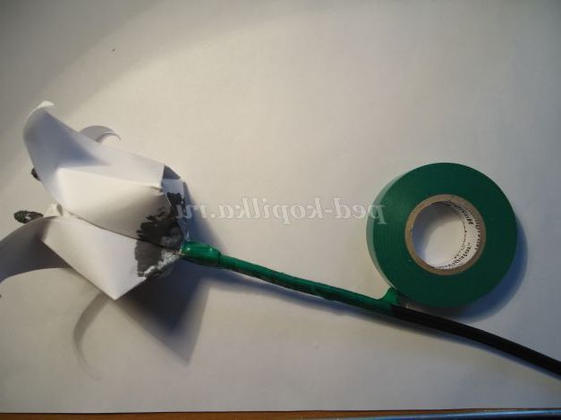30. Ізолентою обмотуємо стеблинка до місця кріплення листочка. Один листочок краще робити з декількох шарів паперу.