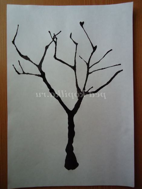6. Щоб дерево вийшло більш акуратним, капаємо крапельку в ті частини гілок, звідки нам хотілося б, щоб починалася наступна гілочка. І дуємо на краплю, але тепер не сильним потоком повітря, а більш слабким, щоб вдавалося задавати напрям руху туші.