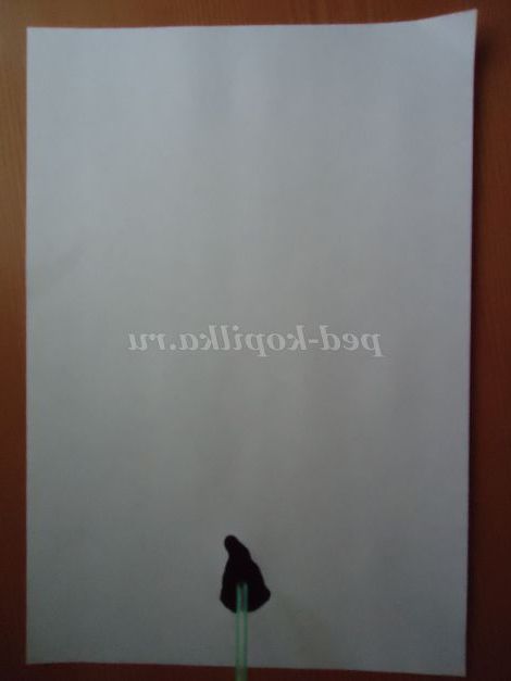 3. Трохи похитуємо лист з боку в бік - клякса розпливається по ширині аркуша, щоб надалі стовбур дерева вийшов не дуже тонким.
