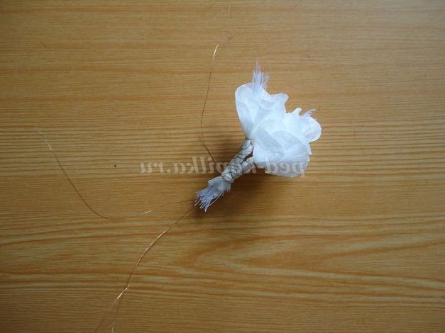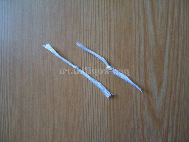 6.Разрезаем на дві половини накручені нитки і зав'язуємо вузлом посередині - це будуть тичинки.