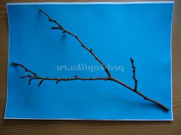15.Примеряем гілочку до листу і відрізаємо зайве.