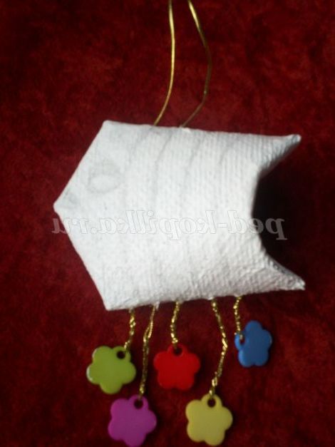 3. Робимо з 5 см срібної нитки петельку і приклеюємо на клей ПВА з допомогою шматочки паперу. Склеюємо.