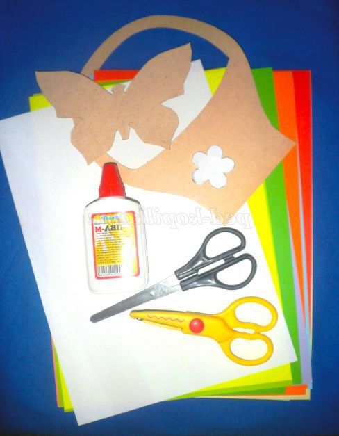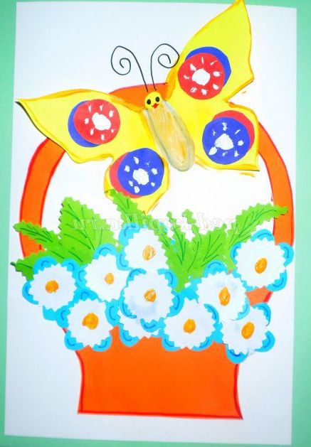 7. Наклеїти метелика на ручку кошика. Включаємо фантазію і прикрашаємо метелика