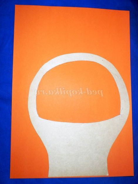 5. Наклеїти кошик на білий картон. Розташувати листя і квіти на кошику. Все акуратно наклеїти на кошик.