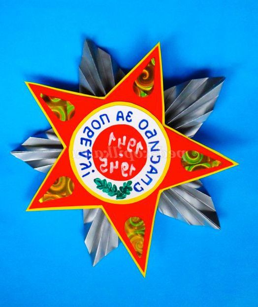 Орден своїми руками буде цікавий для вихователів дитячого садка, вчителів початкових класів та дбайливих родителей.Работа складається з аплікації з паперу, використовуючи техніку "орігамі".
