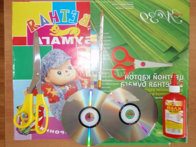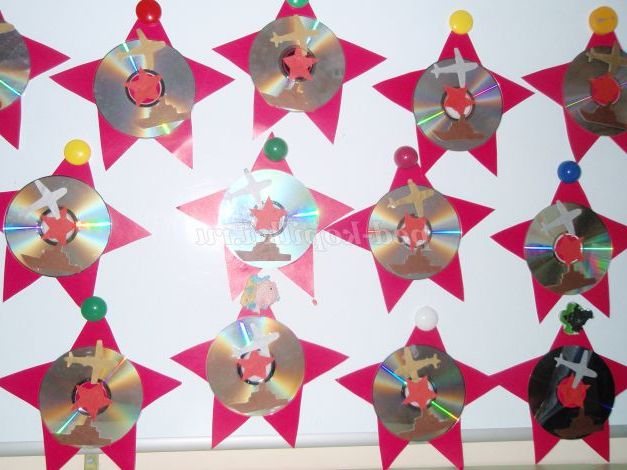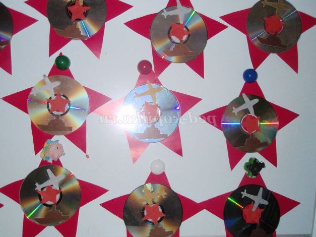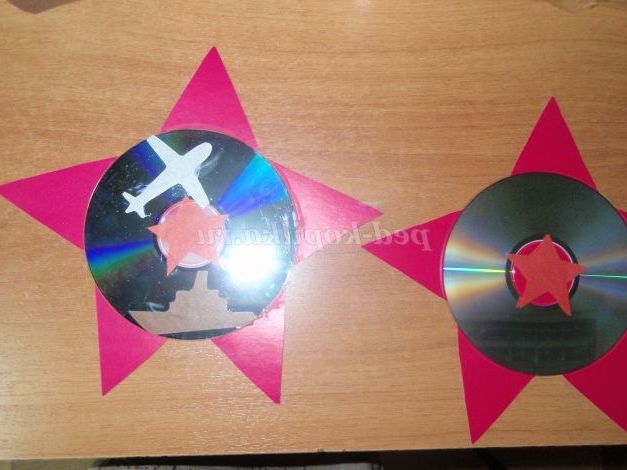 У серединці у диска дірочка, наклеюємо на неї маленьку зірочку червоного кольору, вирізану з кольорового паперу.