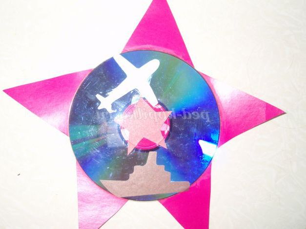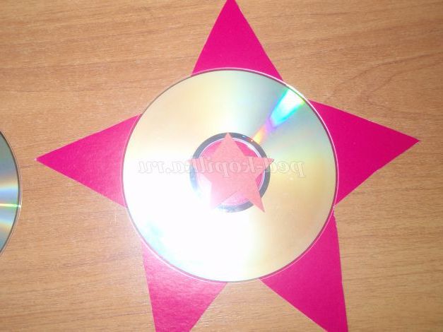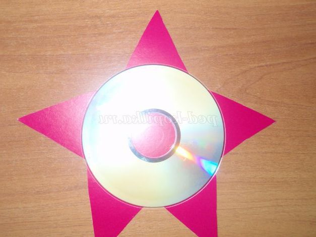 Беремо червону зірку і приклеюємо на неї по центру лазерний диск.
