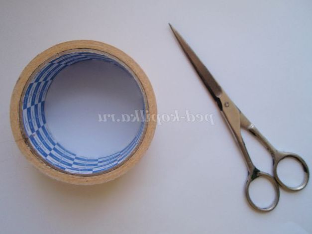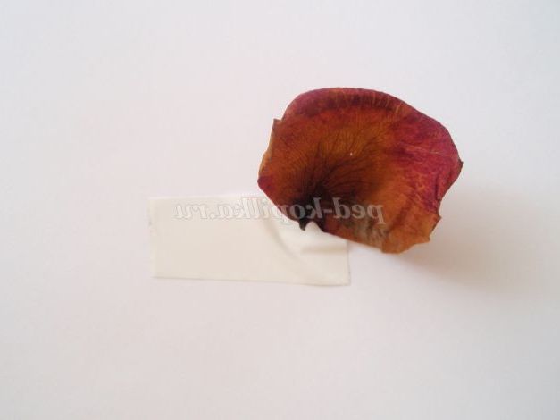 На смужку скотча наклеюємо пелюстки троянд по колу, щоб сформувати квітка. Кожна пелюстка наклеюється трохи внахлест один на одного.