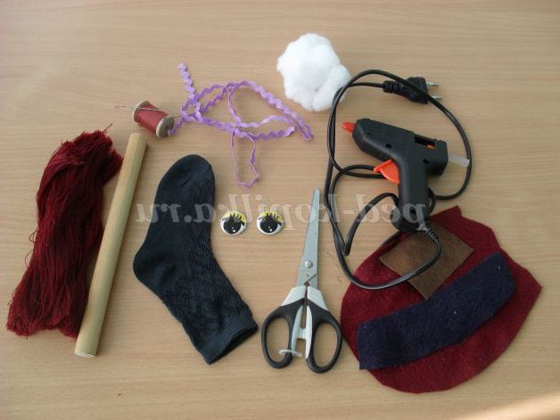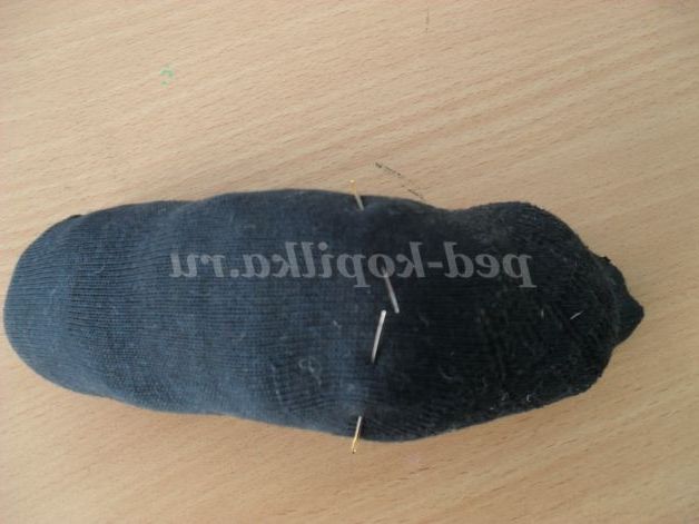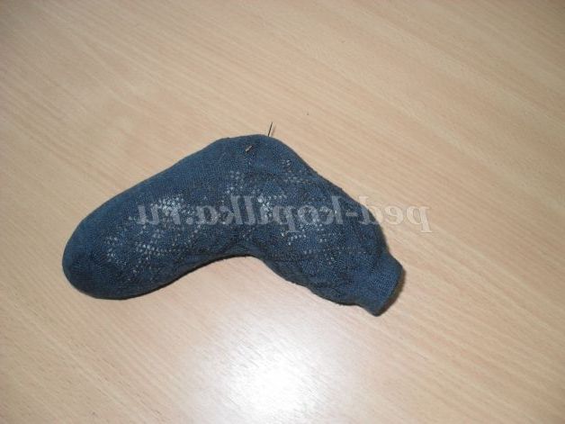 Носок щільно наповніть синтепоном, щоб не було порожнеч.