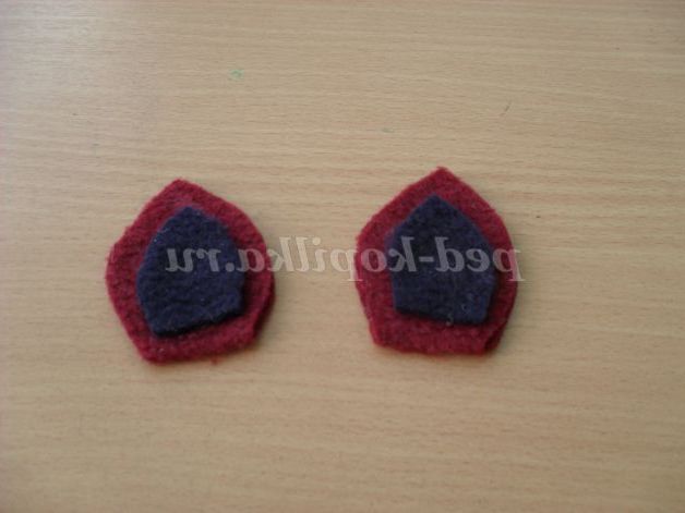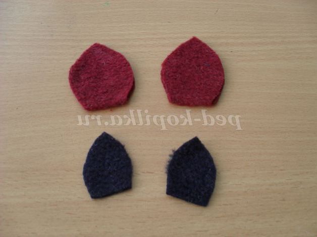 З флісу вирізати дві пари вушок різного кольору: одні більше, інші менше.