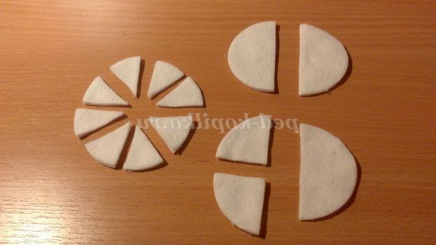 3. Розрізаємо 2-ой ватний диск навпіл, потім на 4 частини, потім на 8 частин.