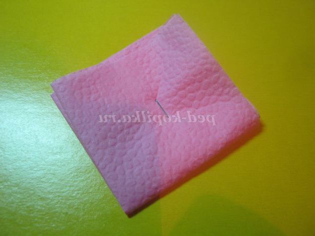 5. Виготовлення квітів і листя. Не расправленную серветку скласти вчетверо і закріпити стерлером.