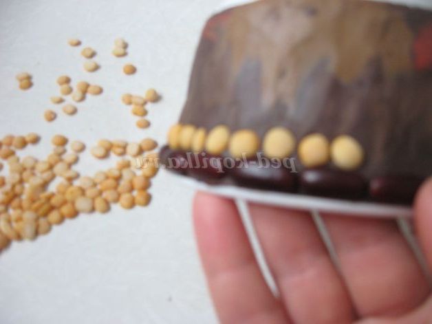 Прикладаючи насіння до пластиліну, злегка вдавлюють її. Вибирайте насіння цілі, однакового розміру.