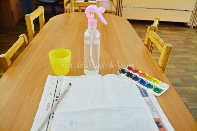 З пульверизатора змочуємо тканину, так щоб вона вся була мокра.