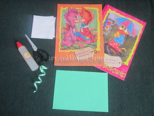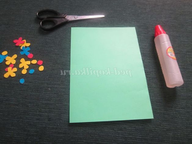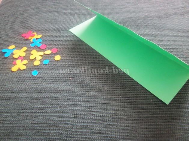 Крок 1. Беремо половину аркуша А4 зеленого кольору, згинаємо його навпіл і закріплюємо згин. ( фото №3, 4)