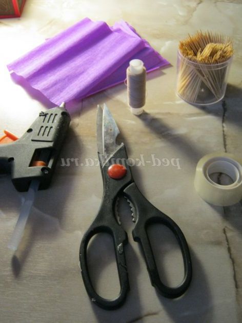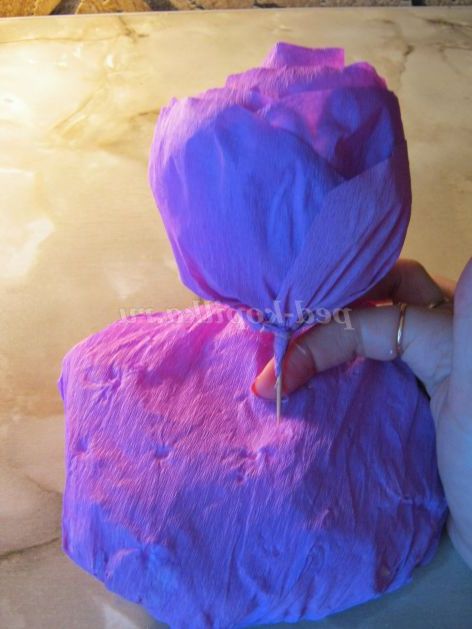 Крок 8.Берем шматок пінопласту, обертаємо його кольоровий гофрованої папером, вставляємо в нього квітка.