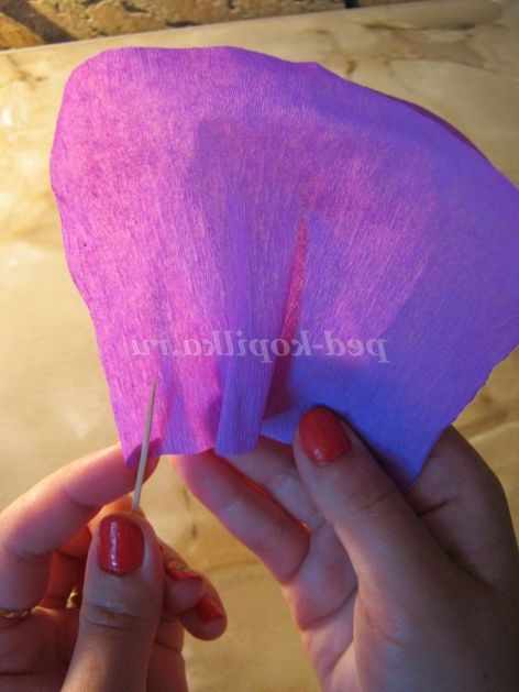 Крок 9.Прикладываем зубочистку до пелюстці і закручуємо кожна пелюстка