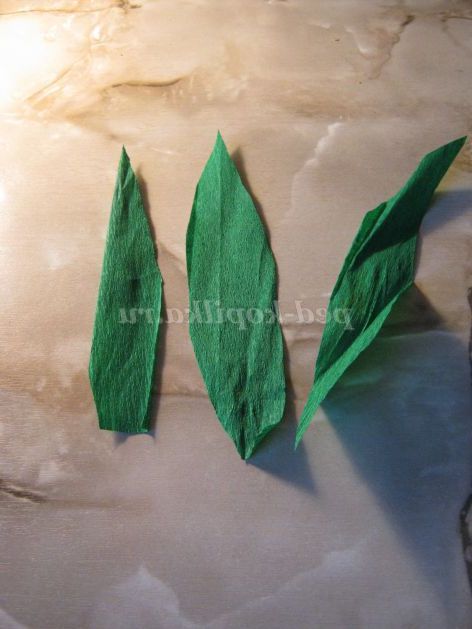 Крок 9.Нарезаем із зеленої гофрованого паперу «пелюстки» і додаємо їх до квітки.