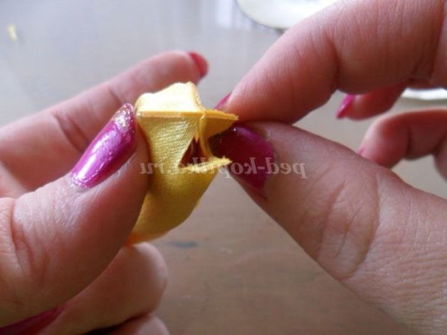 Після цього акуратно прикріплюємо пелюстки до вінець, оплавив краю випалювачем, формуючи квітка.