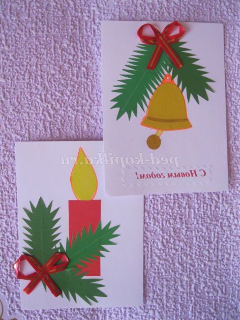 Також пропоную вам ідеї для новорічних листівок для дітей дошкільного та молодшого шкільного віку.
