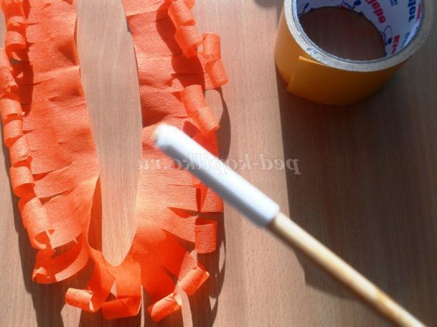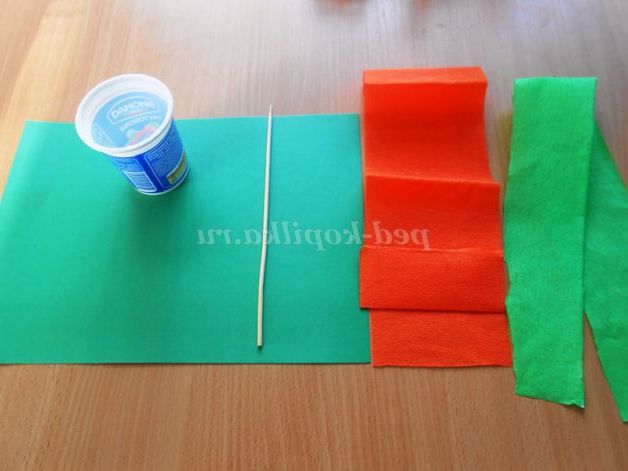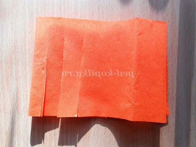 Відрізаємо від гофрованого паперу стрічку розміром приблизно 6 на 30 см і згортаємо її вчетверо
