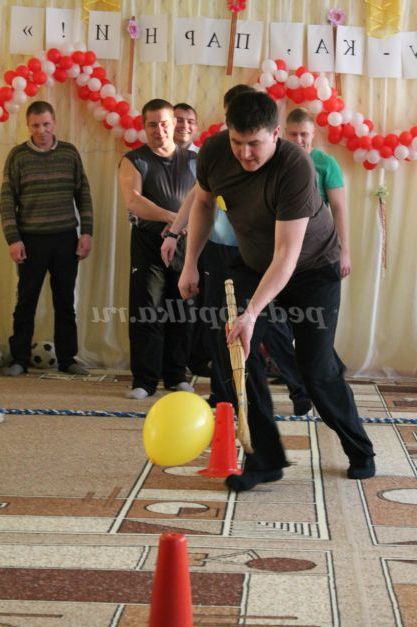 5конкурс-естафета "Веникобол".Веником провести повітряну кульку між кегель