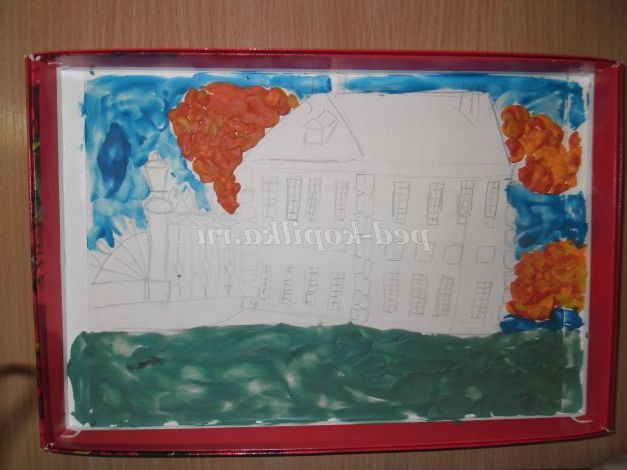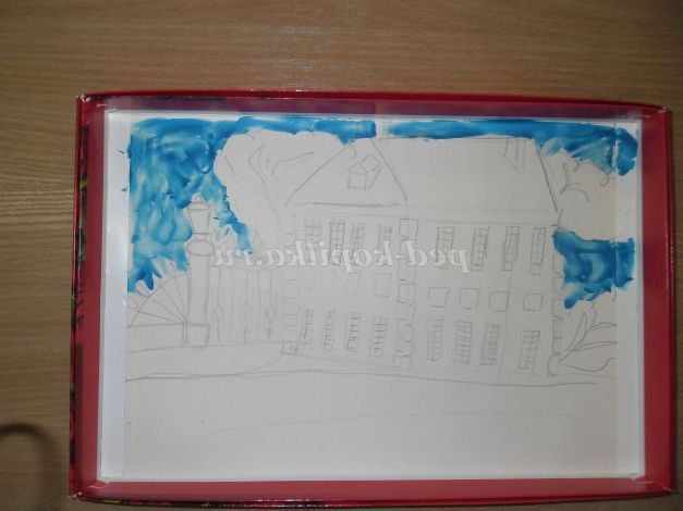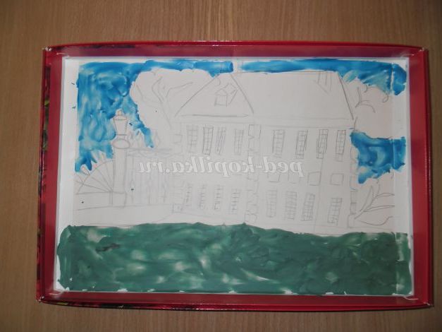 Далі переходимо до «розфарбовуванню» самого будиночка і решітки. Це найбільш трудомісткий процес, так як вимагає найбільшої акуратності і концентрації уваги дитини. Фото 7.