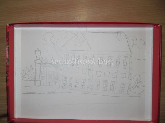 Перед початком роботи наносимо на коробку (картон) контур малюнка нашої майбутньої картини. Фото 2.