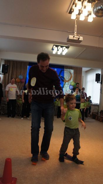 Ведучий: увага, Увага! Говорить і показує Московський район. Дорогі друзі та гості! Ми раді вітати всіх глядачів і вболівальників! Ми зібралися тут, у цьому залі на спортивні змагання, в яких візьмуть участь не тільки діти, але і їх швидкі і спритні батьки!