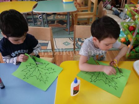 Навчити складати композицію з використанням просторових прийменників В, НА, ПІД, НАД і орієнтування на площині ВЕРХ, НИЗ. Закріплення вивчених прийомів вирізування