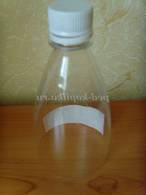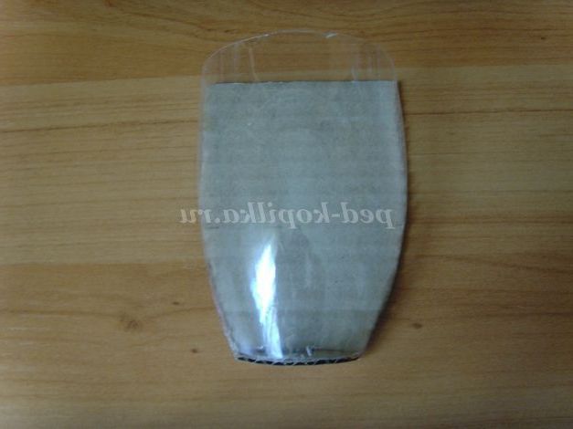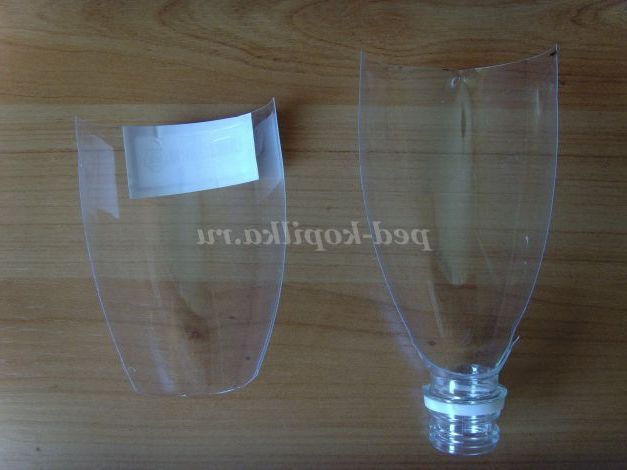 1.Отрезаем верхню частину пластикової пляшки, довжина від горловини 13 см (з однієї пляшки виходить дві деталі) розрізаємо вздовж навпіл, далі відрізів горлечко