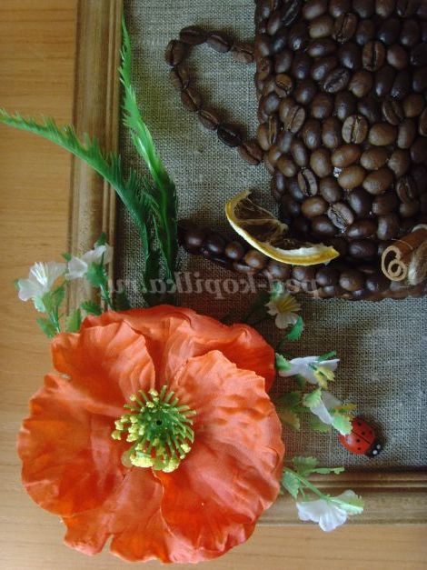 Зерна кави на сьогоднішній день є найбільш популярним матеріалом для створення різних виробів своїми руками. Кавові зерна - мають приємний запах, не псуються, мають насичений колір і цікаву фактуру. Кавові зерна - приносять щастя в дім, вони володіють неповторним ароматом кави, який створює атмосферу тепла і затишку.