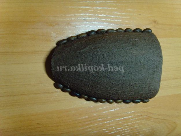 Приклеюємо кавові зерна спочатку по краю, а потім по всій заготівлі.