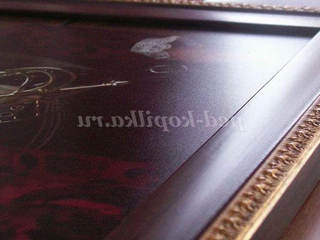 Друк на полотні або шовку. Натяжка на підрамник і вставлене в багет. Виглядає така картина суперськи.