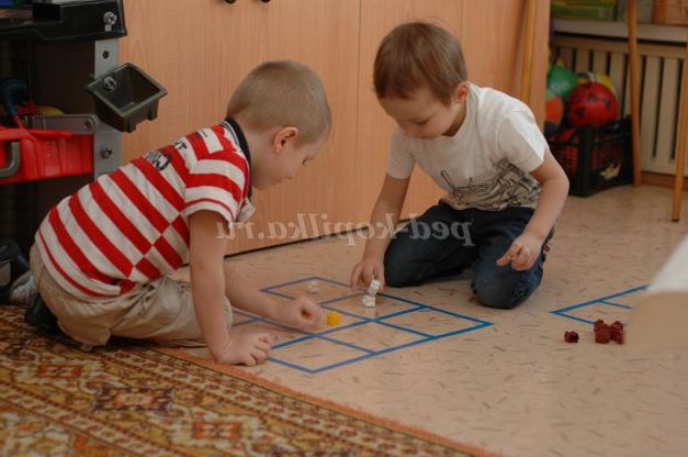 Спочатку зробили полі. Ідея фішок прийшла пізніше. Діти грали елементами конструктора. Різного кольору конструктор - і вперед!