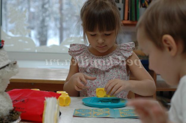 Потім настає пора, коли кожній дитині дається гра на одного. Діти можуть зосереджено і тривалий час грати. Стикаючись з труднощами, що кожна дитина по-своєму її долає. Хтось намагається відмовитися відразу від рішення задачі, і тоді я приходжу на допомогу, хтось із завзятістю не хоче приймати допомогу, намагаючись самостійно вирішити.