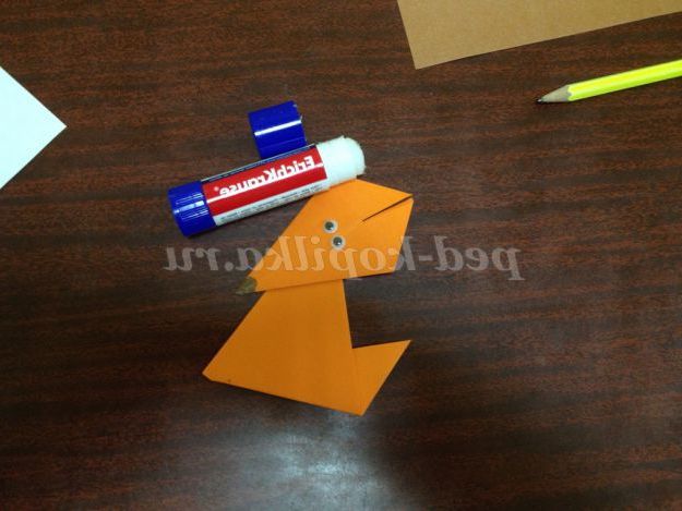 Тепер ми зробимо лубяную хатинку для нашого зайчика. Нам потрібно квадрат з коричневої кольорового паперу.