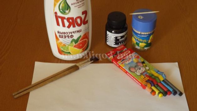 Потім змішуємо чорну гуаш і будь миючий средство.Это потрібно для того,щоб фарба більш рівномірно лягала на основу,зроблену восковими крейдою.