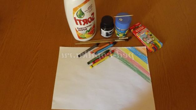Зафарбовуємо аркуш паперу або картону кольоровими восковими мелками.Используем будь-які кольори, крім чорного.