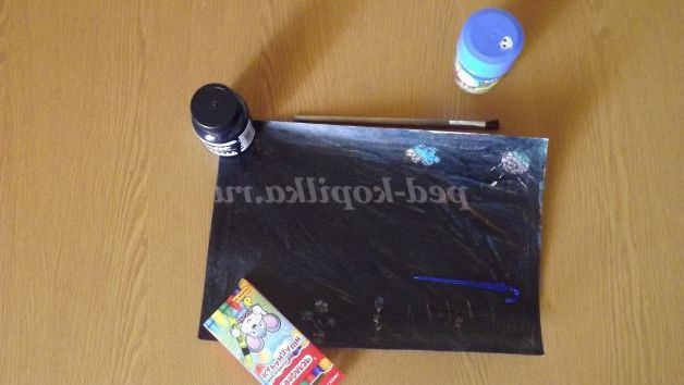 Лист має бути повністю зафарбований мелками.Не шкодуйте крейд:чим краще зафарбований лист,тим більш чітким і яскравим виходить малюнок.