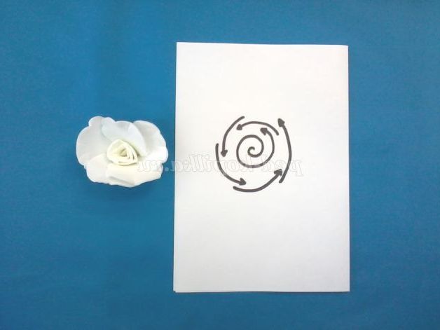 5.Начинаем збірку з середини квітки, для цього намазати нижній край першого пелюстки клеєм і закрутити.