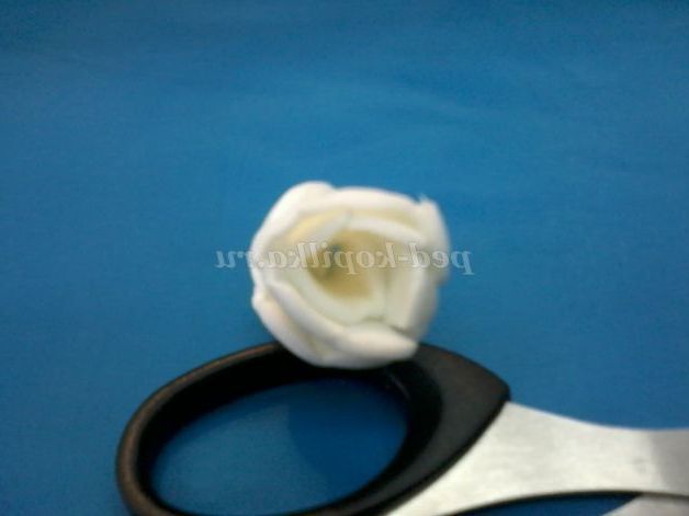 4.Края верхній частині пелюстки розтягнути, таку техніку я назвала «розтягування». Тягнути не потрібно занадто сильно, щоб не порвати заготовку. Але якщо у вас край трохи надірвався, не засмучуйтеся. Це додасть додатковий обсяг пелюстці.