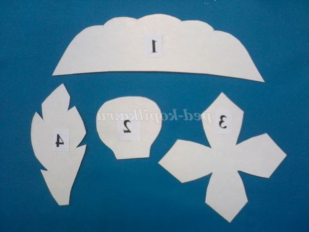 6. Приклеюємо 4 пелюстки (шаблон 2) по колу, намазуючи клеєм ніжку.