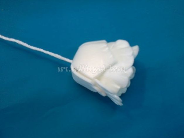 10.Приклеиваем протилежні частини чашолистка до бутону по черзі.
