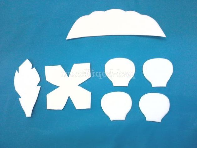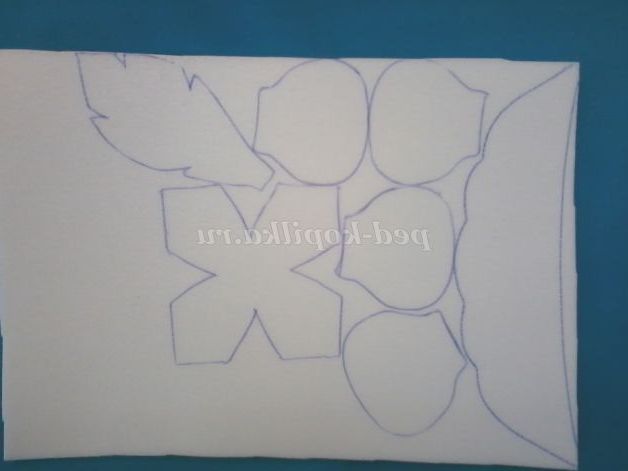 2. Переносимо трафарети бутона і листка на ізолон: 1-ий шаблон - 1 дет, 2 - ий - 4 дит, 3-ий - 1 дит. Обводимо ручкою.