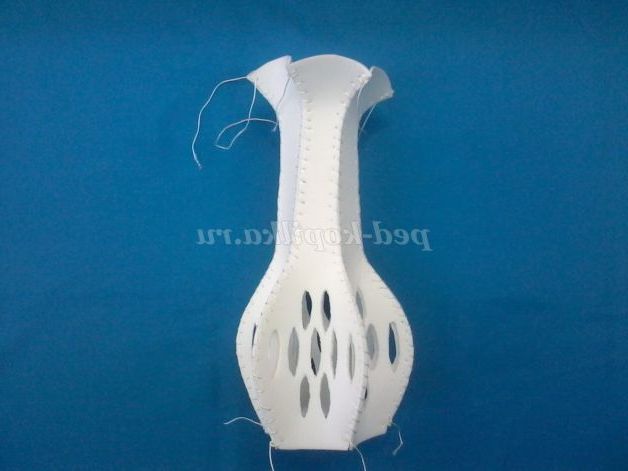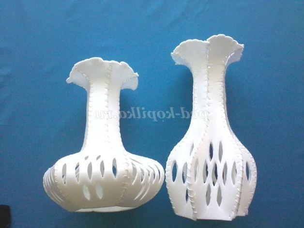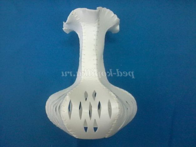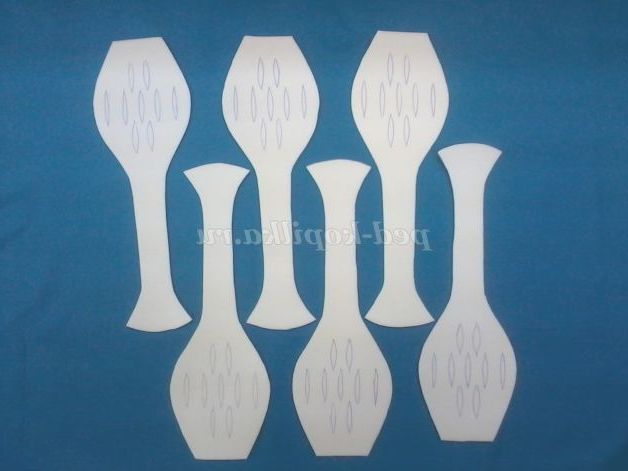 Для основи краще взяти скляну пляшку, або погіршити дно у пластикової пляшки, для того, щоб ваза вийшла стійкою. При складанні викрійки потрібно враховувати розмір пляшки. Ваза в готовому вигляді виходить у висоту менше лекала.